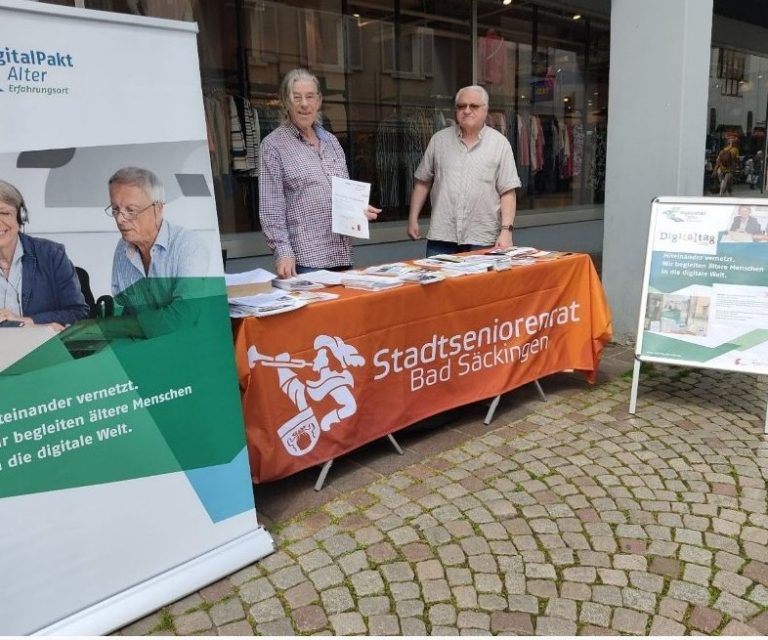 Der Stadtseniorenrat Bad Säckingen informiert am 20.6.2026 von 9:00 -13:00 unter den May-Arkaden in Bad Säckingen über das ehrenamtliche digitale Angebot der Digitallotsen.